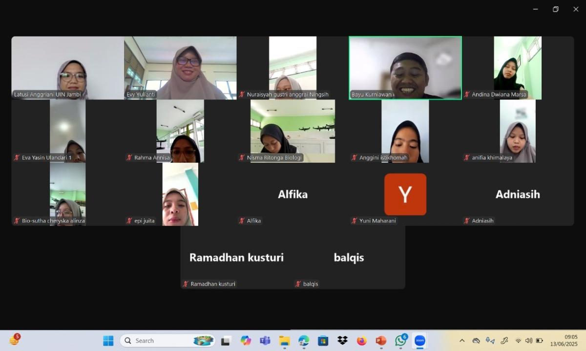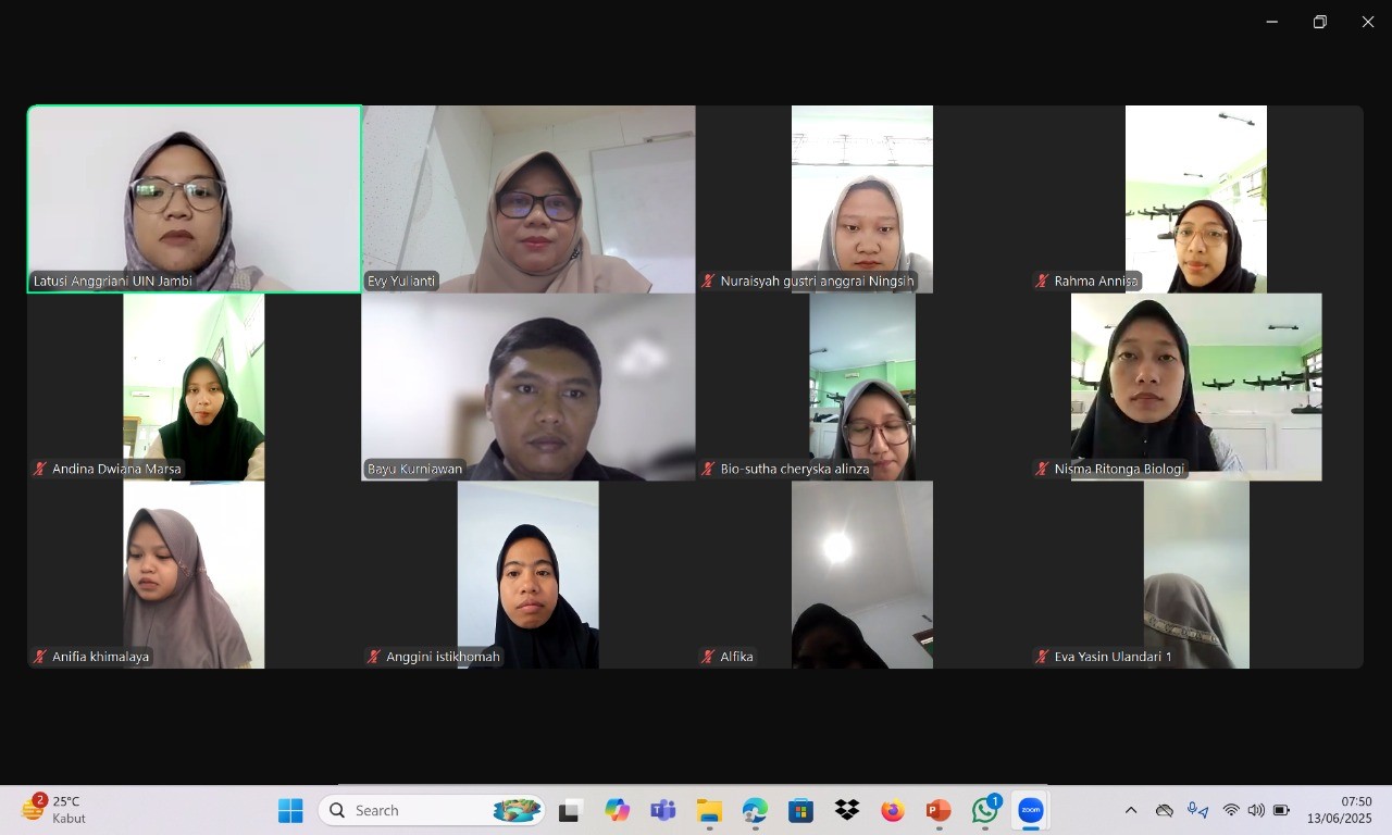 Kegiatan yang berlangsung secara daring melalui platform Zoom ini dibuka oleh Bayu Kurniawan, M.Sc., selaku Ketua Program Studi Biologi UIN STS Jambi. Dalam sambutannya, beliau menekankan pentingnya sinergi antar institusi dalam memperkuat pemahaman mahasiswa terhadap perkembangan ilmu bioteknologi yang dinamis dan multidisipliner.